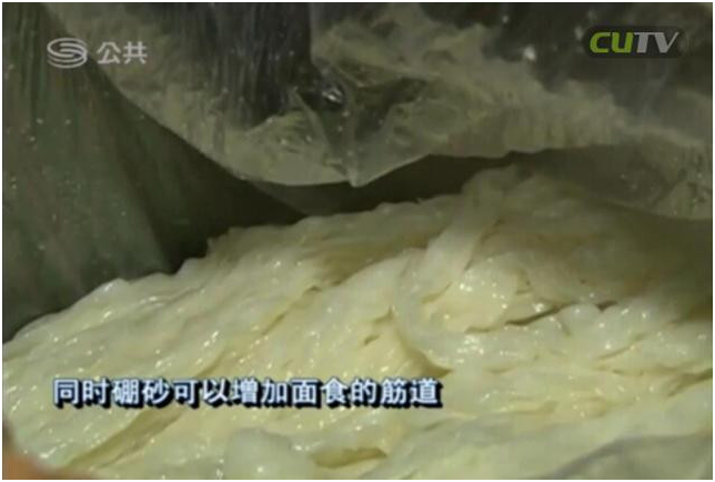 據(jù)了解,硼砂是一種易溶于水的工業(yè)原料,因毒性較高,廣泛用于殺菌殺蟲劑的生產(chǎn)。人體過多食用后,會引起多臟器的蓄積性中毒。同時,硼砂可以增加面食的筋道,因此成為黑心廠商的違法添加物。目前,食品廠法人以及相關負責人已被刑拘。
