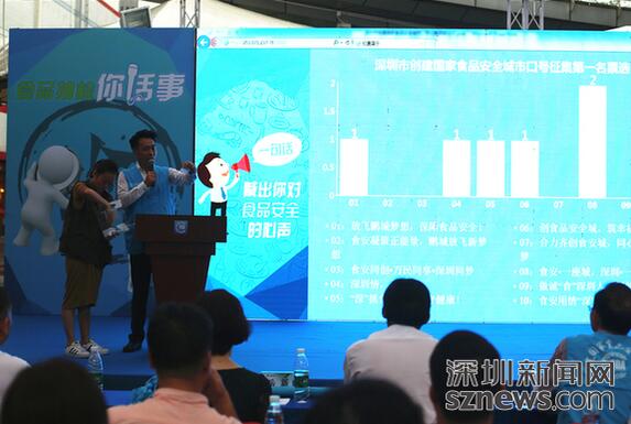 深圳市創(chuàng)建國家食品安全城市口號(hào)征集活動(dòng)第一名誕生,持續(xù)開展一個(gè)多月的“深圳市創(chuàng)建國家食品安全城市口號(hào)”征集活動(dòng)終于完美落幕。深圳新聞網(wǎng)訊(記者 王曉婧 林玟珊)持續(xù)開展一個(gè)多月的“深圳市創(chuàng)建國家食品安全城市口號(hào)”征集活動(dòng)終于完美落幕。在12日舉行的“2016年深圳市食品安全宣傳周啟動(dòng)儀式——暨深圳市創(chuàng)建國家食品安全城市口號(hào)征集頒獎(jiǎng)儀式”上,來自湖南的蘭繼紅所創(chuàng)作的“創(chuàng)食品安全城,筑幸福深圳夢”被當(dāng)場票選為最佳口號(hào)。這條口號(hào)從此前收集到16568條口號(hào)脫穎而出,成為最佳食品安全城市口號(hào),并獲得5000元獎(jiǎng)勵(lì);其余優(yōu)秀獎(jiǎng)九名,獲得獎(jiǎng)金800元。