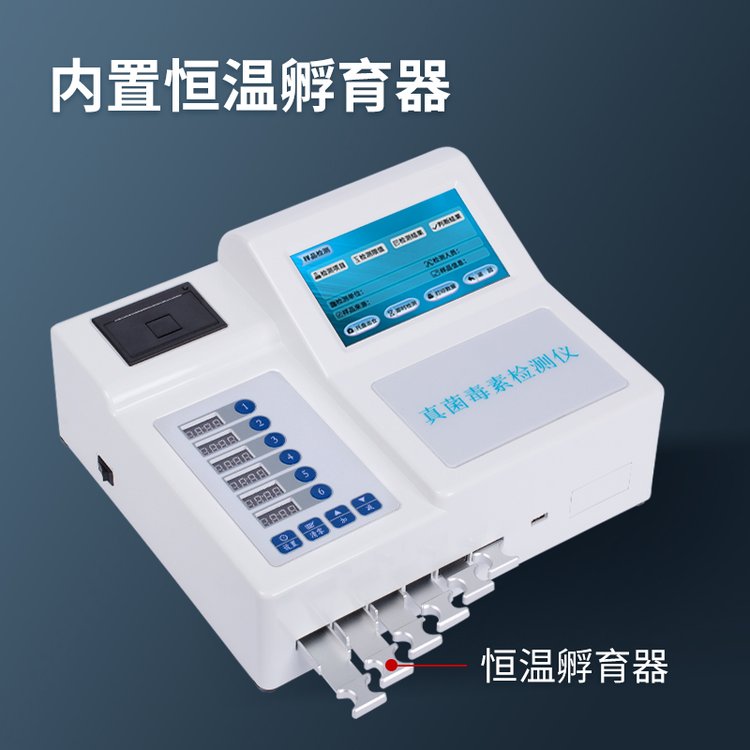 深芬儀器研制出的CSY系列真菌毒素快速測(cè)定儀應(yīng)用競(jìng)爭(zhēng)抑制免疫層析的原理,通過(guò)檢測(cè)線熒光定量卡中的熒光強(qiáng)弱程度,定量分析待檢樣品中真菌毒素殘留含量。能夠快速定量檢測(cè)糧食、飼料、谷物、食用油、調(diào)味品等食品中黃曲霉毒素(T2毒素、嘔吐毒素、赭曲霉毒素、伏馬毒素、玉米赤霉烯酮,)含量。儀器不僅制作精良,而且操作簡(jiǎn)單、采用熒光讀數(shù),結(jié)果精準(zhǔn)準(zhǔn)確。采用熒光量子點(diǎn)技術(shù),結(jié)合了膠體金快速、酶聯(lián)免疫定量以及色譜法準(zhǔn)確的技術(shù)特點(diǎn),可在8min內(nèi)快速準(zhǔn)確定量的測(cè)定出對(duì)應(yīng)的項(xiàng)目。操作簡(jiǎn)便,只需一步加樣,無(wú)需標(biāo)準(zhǔn)品,無(wú)需做標(biāo)準(zhǔn)曲線,結(jié)果準(zhǔn)確可靠且可現(xiàn)場(chǎng)打印,準(zhǔn)確性高度符合HPLC法的檢測(cè)結(jié)果,為霉菌毒素的快速現(xiàn)場(chǎng)檢測(cè)提供了一種全新的技術(shù)手段,適用于各類原料收儲(chǔ)、飼料加工企業(yè)、養(yǎng)殖企業(yè)及相關(guān)監(jiān)管部門。