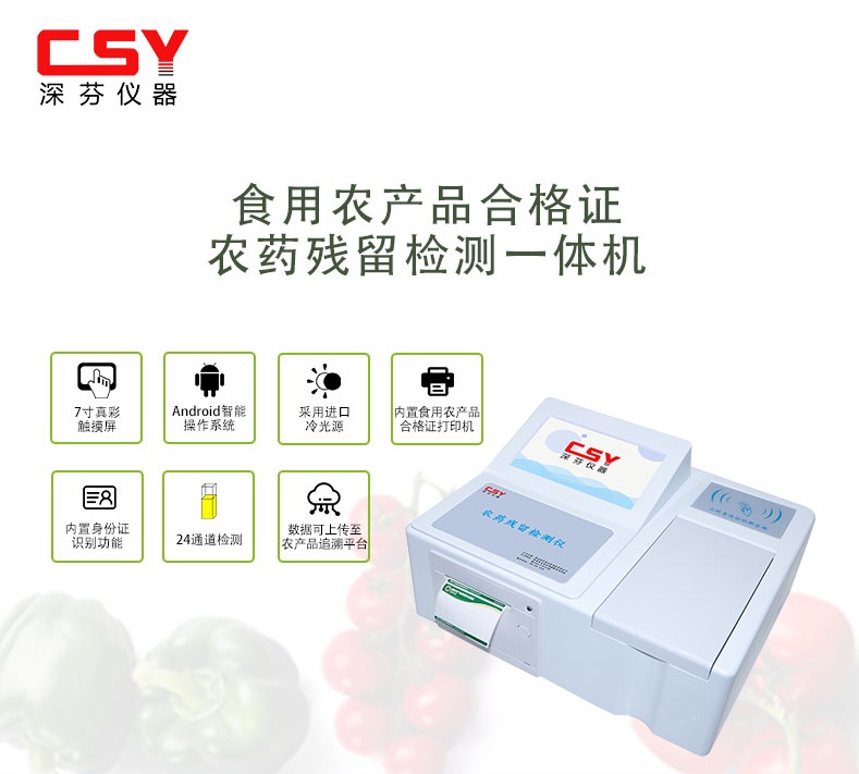 CSY系列農(nóng)藥殘留檢測儀推動了農(nóng)產(chǎn)品質(zhì)量快檢技術的發(fā)展,同時為消費者篩選了綠色安全有保障的食品,為社會的食品安全提供有力保障。